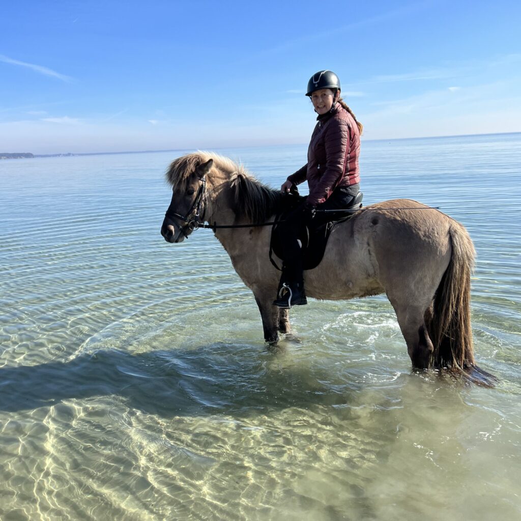 Når man kører fra receptionen gennem bommen og forbi Feddets svømmehal til højre, passeres et rødt hus på højre hånd. Lige efter huset er der skiltet til højre mod vores islandske heste. Fortsæt ned af grusvejen (3-400 meter) og du vil have vores folde på begge sider. Parker til venstre ved P-skiltet hvorfra du kan skimte bommen og vores skurvogn.